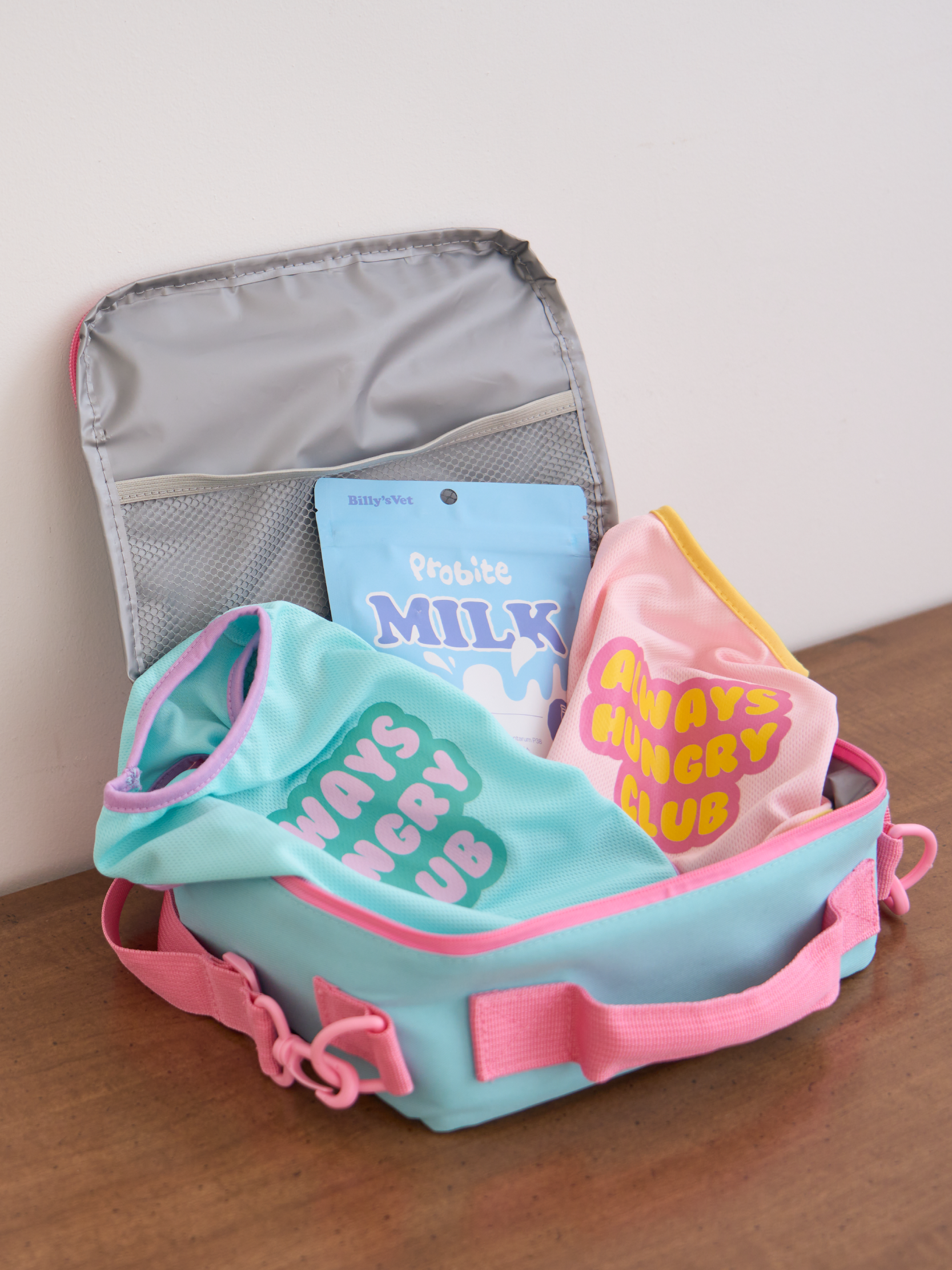 Cute cooling bag for always hungry club memebers. Includes an adjustable and detachable strap for your convenience. Stay cool with your own snack bag!